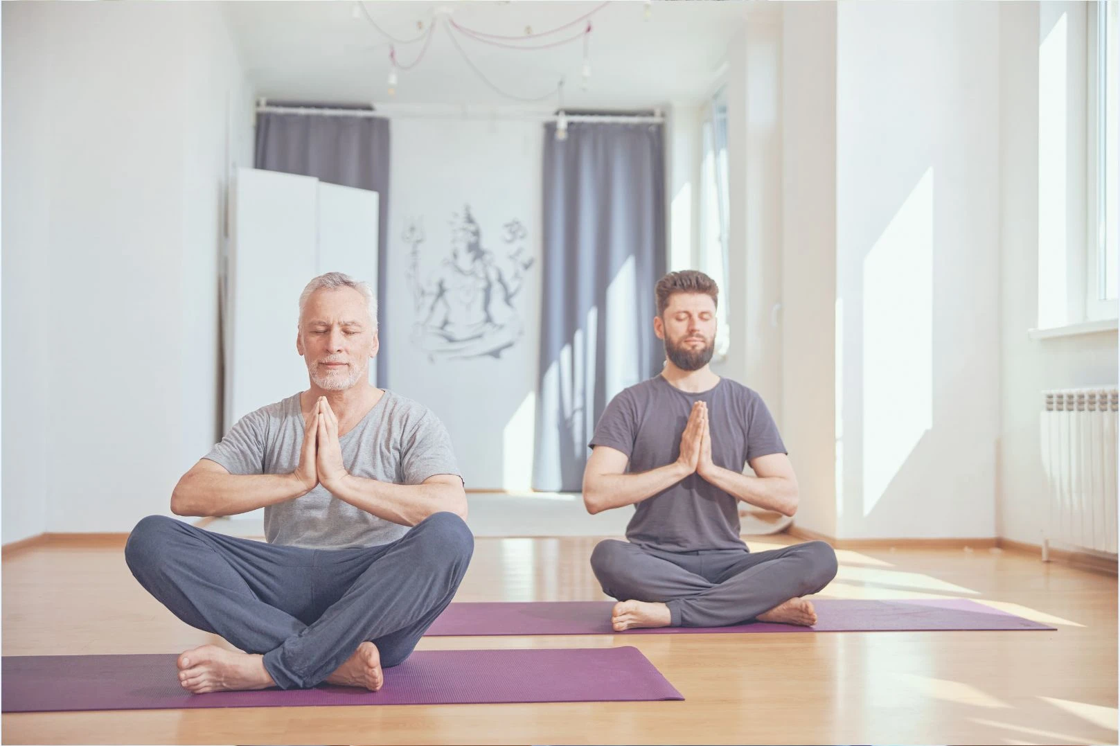 Форма одежды должна быть простой, не стесняющий движений, из натуральных тканей. Колени и локти по возможности оставляйте открытыми, чтобы следить за выполнением асан по всем правилам. Занятия йогой проводят босиком, обувь не нужна, даже носки необходимо снимать, чтобы не скользить и спокойно принимать устойчивые положения.